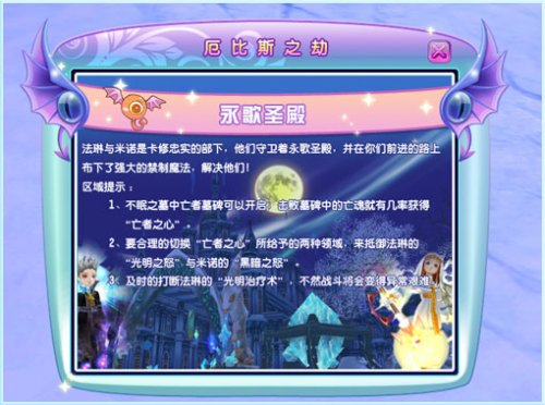 第二关:暮光大教堂 http://xy3.yezizhu.com 任务目标:杀死法琳与米诺 叶子猪原创文章 活动范围:不眠之墓、永歌圣殿(M键—查看大地图) 本文来自叶子猪游戏 谢绝转载 叶子猪原创文章 图11 一道道鬼火在幽蓝色的丛林中穿梭,被诅咒的亡灵游荡着,阴森森的怪吓人,这就是不眠之墓。 请尊重知识产权 保重追究抄究行为法律责任 http://www.yezizhu.com